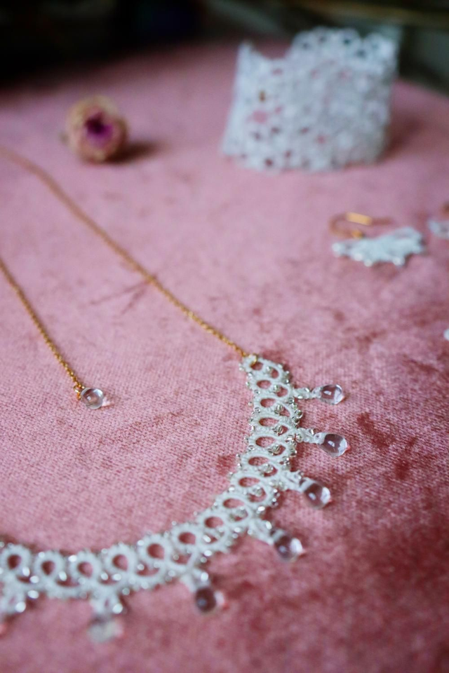 Réalisé en dentelle de frivolité, fait à la main en France.